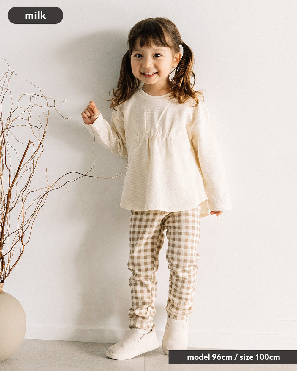 【SALE】[t.] ワッフル ギャザー 長袖 Tシャツ