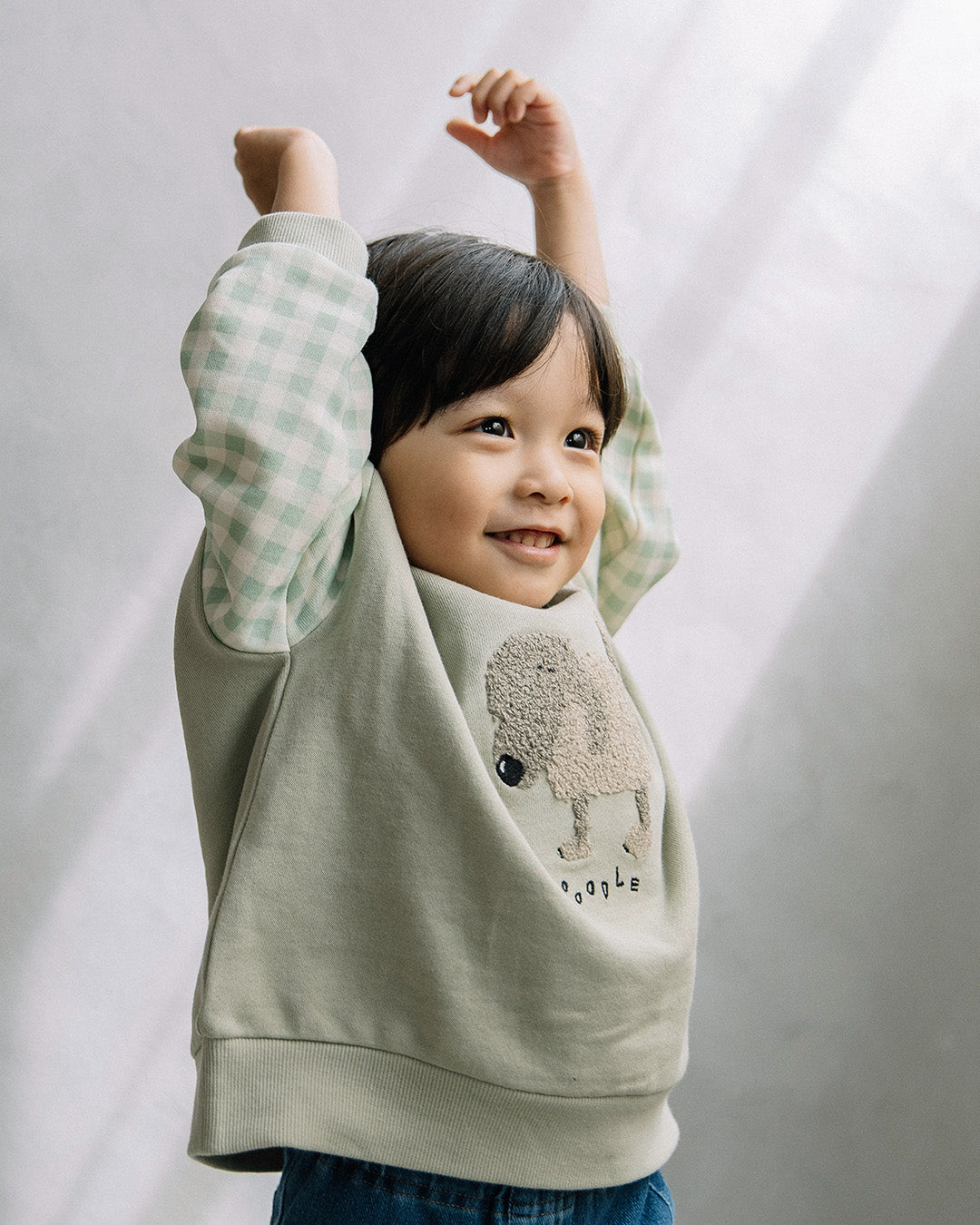 裏起毛では暑すぎるというお子様にもうれしい裏毛素材で、春まで長く着られます。