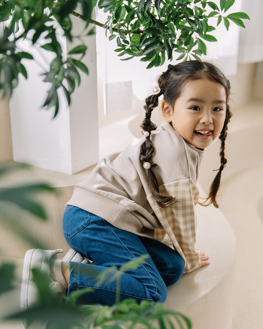チェック柄の袖切り替えの華やかなデザインです。