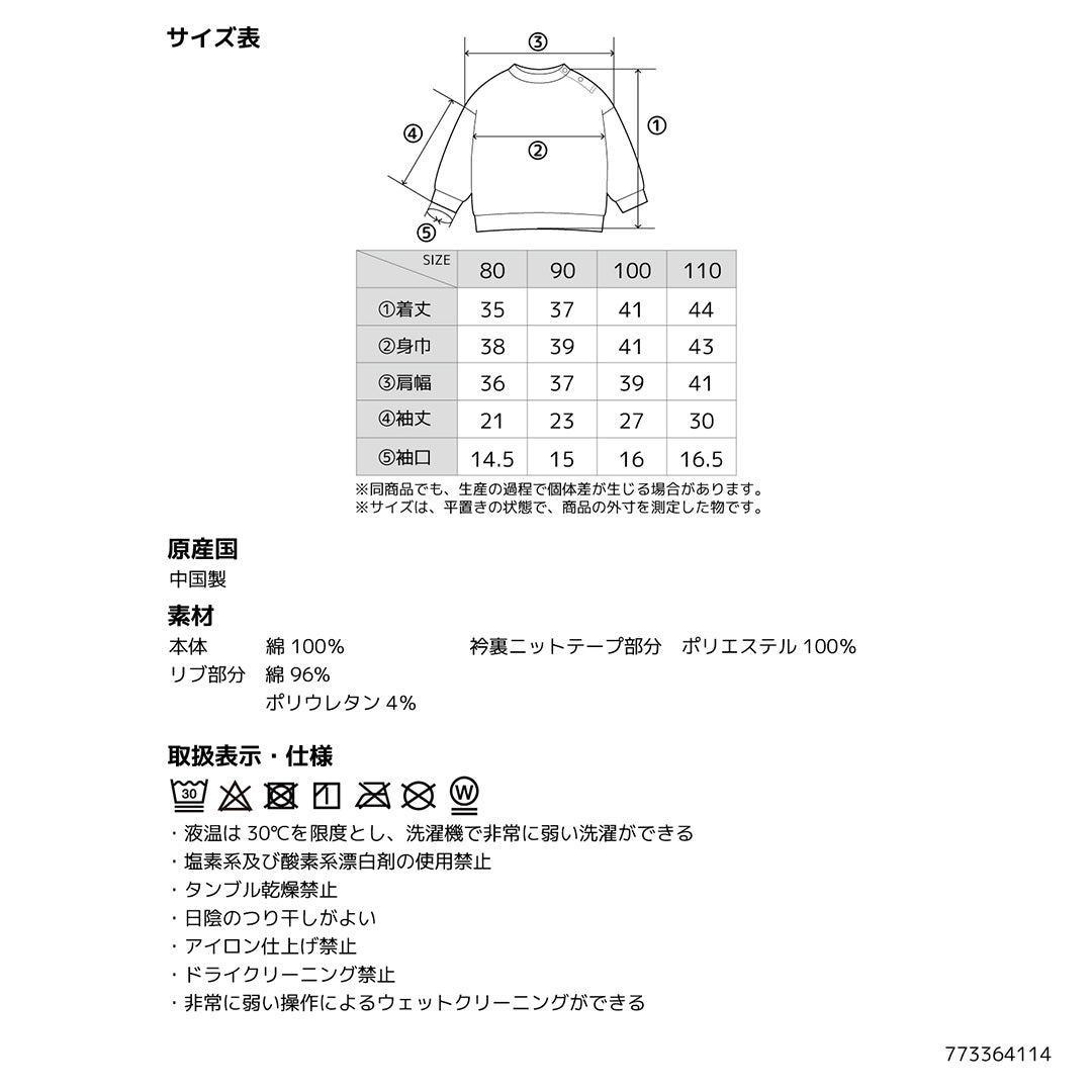 マルミエーレ ティードット キッズ ベビー 子供 子ども 男児 女児 ユニセックス トップス スウェット 秋冬 通園 保育園 80cm 90cm 100cm 110cm